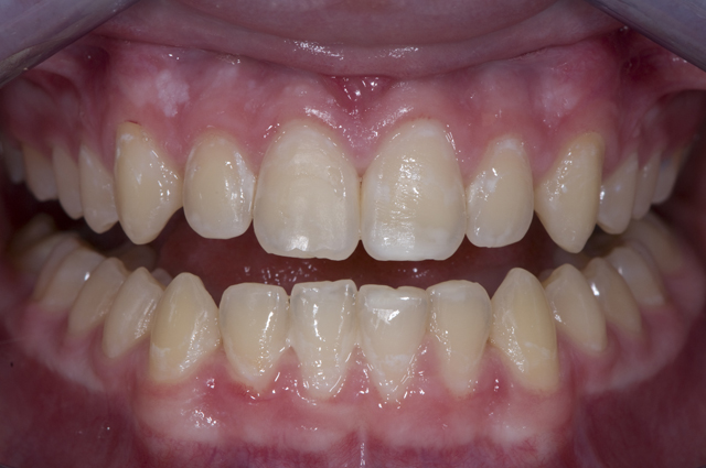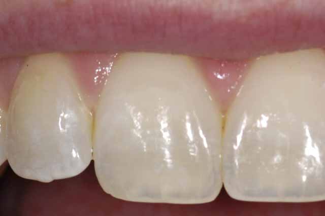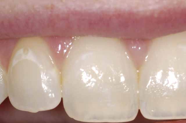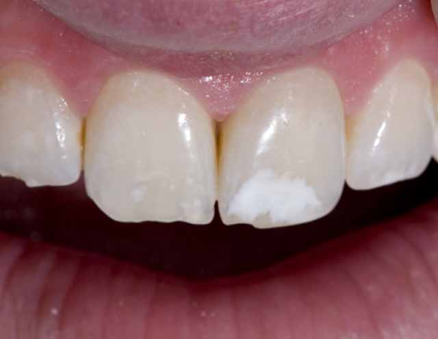 | Elizabeth had a white spot on her tooth that appeared after she had her braces removed. |